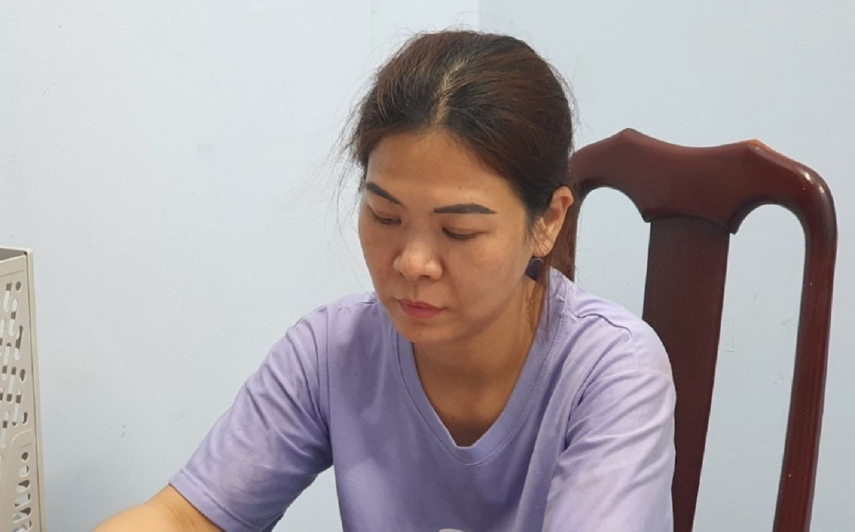 Lương Thị Thanh Thúy tại cơ quan công an. (Ảnh: Sỹ Đức)