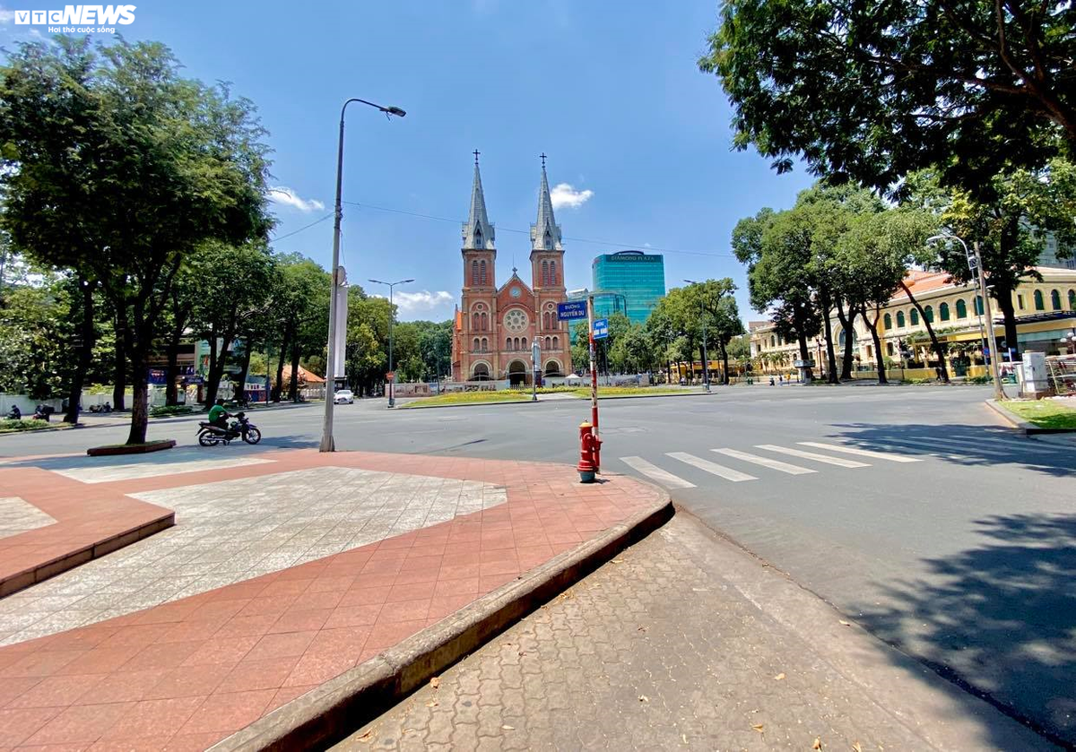 Khu vực Nhà thờ Đức Bà (quận 1) luôn có rất đông người dân và du khách đến vào ngày cuối tuần, trở nên rộng mênh mông, chỉ có vài tài xế giao hàng công nghệ đứng chờ đơn.