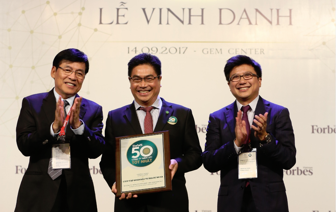 Ông Bùi Xuân Huy – Tổng Giám đốc Tập đoàn Novaland nhận giải thưởng “Top 50 công ty niêm yết tốt nhất” năm 2017