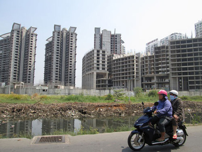Một dự án bất động sản ở huyện Nhà Bè được ngân hàng rao bán. (Ảnh: Ngọc Ánh).