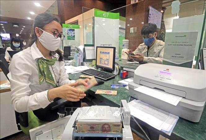 Khách hàng giao dịch tại hội sở chính Vietcombank, 198 Trần Quang Khải, Hà Nội. (Ảnh: Trần Việt/TTXVN)