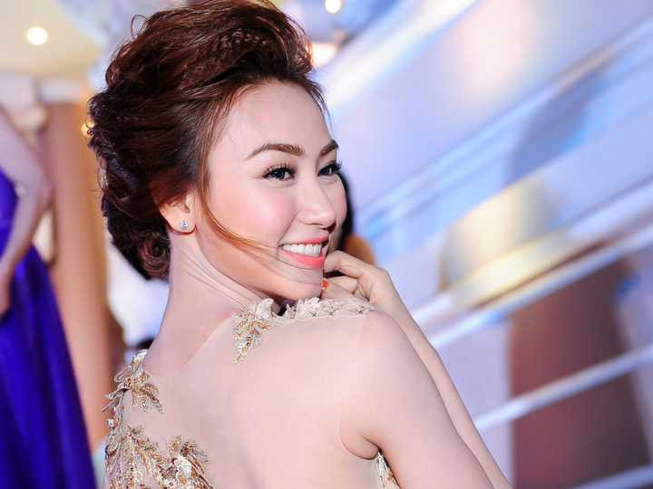 | Với chiếc váy bồng bềnh, mái tóc được vấn cao cầu kỳ cùng phong cách trang điểm nhẹ nhàng tinh khôi, Ngân Khánh giống như cô tiền bước ra từ trong truyện cổ tích |