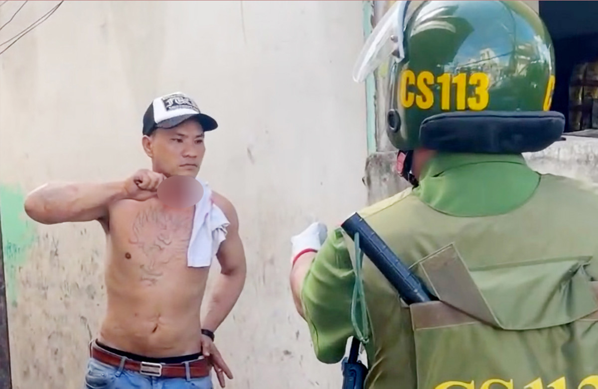 Nhận được tin báo, lực lượng chức năng đến hiện trường. Khi thấy công an, Sơn dùng dao kề và cứa vào cổ đòi tự sát nếu công an đến gần.