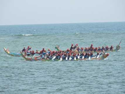 | Sáng 23/2 (Mồng 5 tết nguyên đán Ất Mùi), hàng ngàn ngư dân đảo Lý Sơn và du khách đã tưng bừng khai hội đua thuyền đầu xuân. |