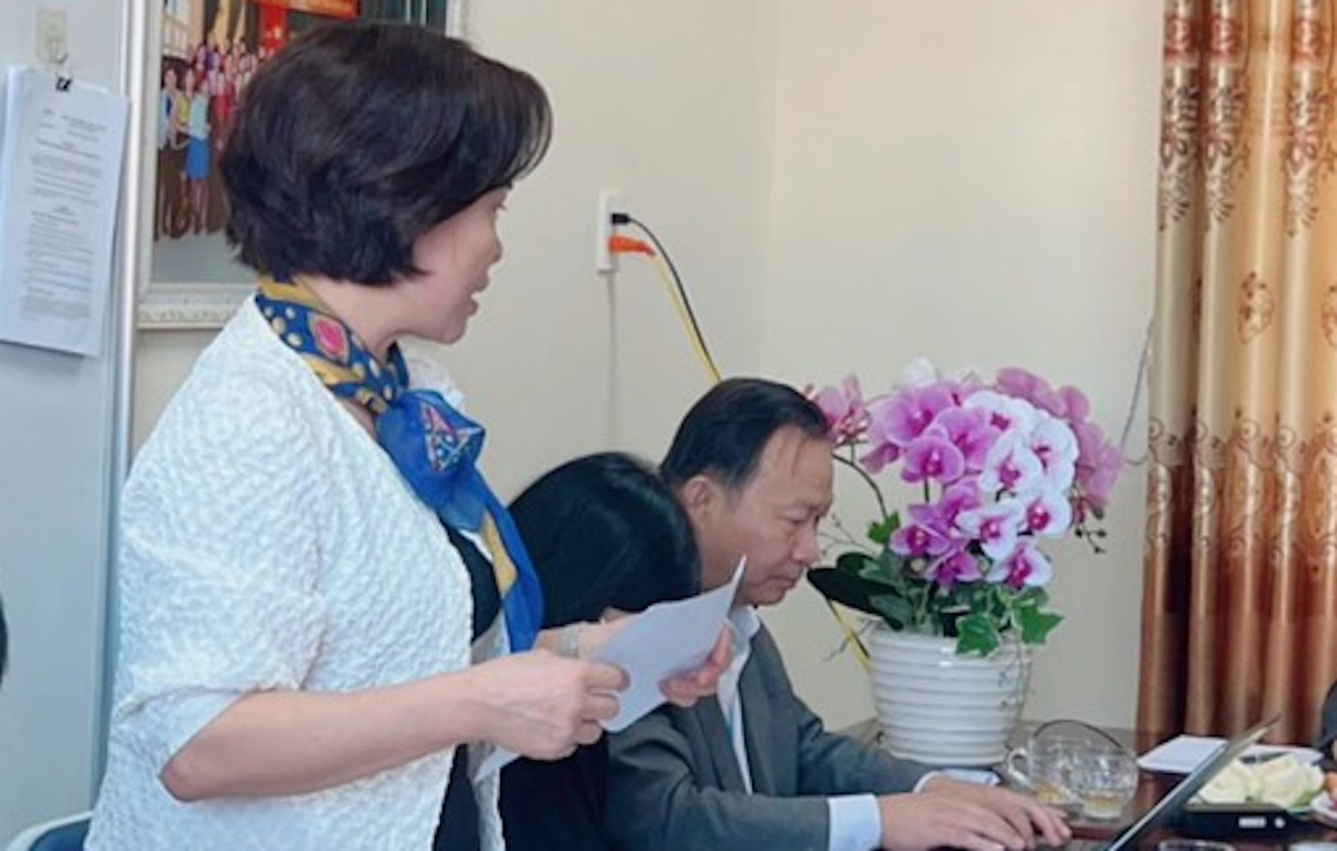 Bà Nguyễn Thị Thu Hà - Phó trưởng Phòng Giám định BHYT - BHXH Sơn La phát biểu tại buổi làm việc. (Ảnh: Bùi Hoà)