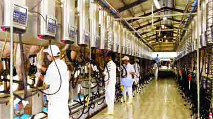 | Hệ thống vắt sữa tự động hiện đại được nhập khẩu từ châu Âu ở Trang trại bò sữa của Vinamilk tại Nghệ An. |