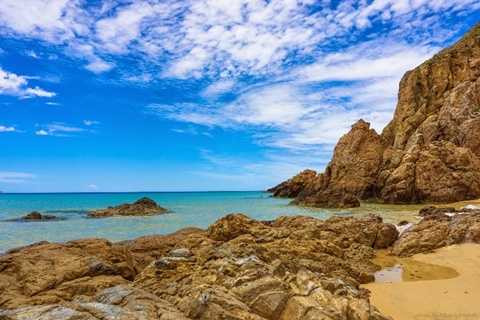 Đảo được hình thành từ núi lửa phun trào nên cảnh vật đa dạng với nhiều gềnh đá cao chen lẫn những bãi biển nhờ tuyệt đẹp.