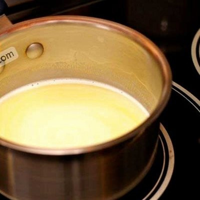 - Trong 1 cái nồi, lần lượt cho sữa, đường và bơ vào đun sôi ở lửa nhỏ.