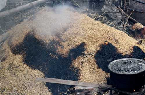 Rơm nếp cháy đượm lửa, nhưng đùng đùng một lát thì hết, lại phải chế thêm rơm. Khi độ nóng phả vào cá đã đạt tiêu chuẩn, thì trấu của gạo nếp được đổ lên lớp than rơm, bốc khói ngun ngút.