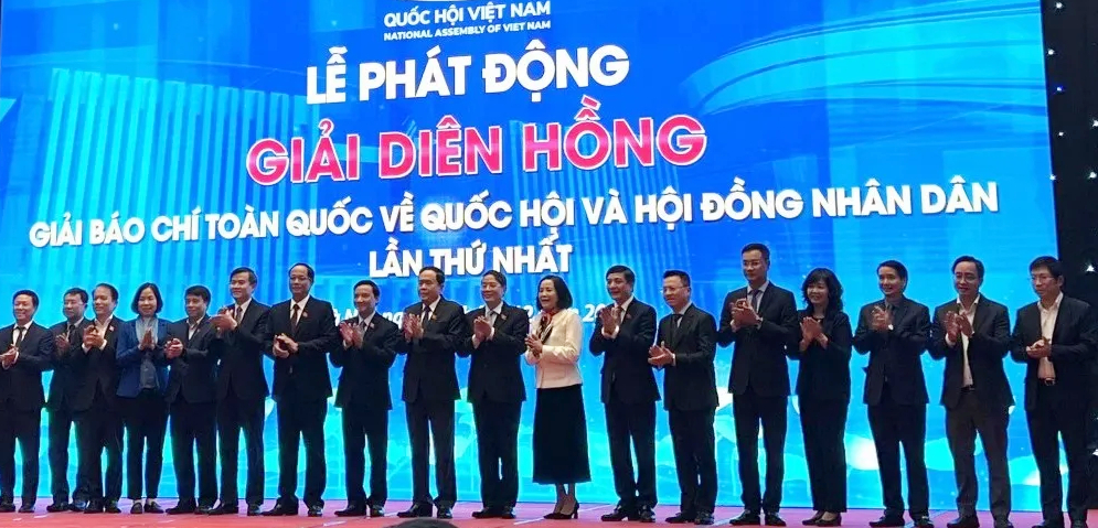 Các đại biểu tại Lễ phát động Giải Diên Hồng - Giải báo chí toàn quốc về Quốc hội và Hội đồng nhân dân lần thứ nhất. (Ảnh: VOV).