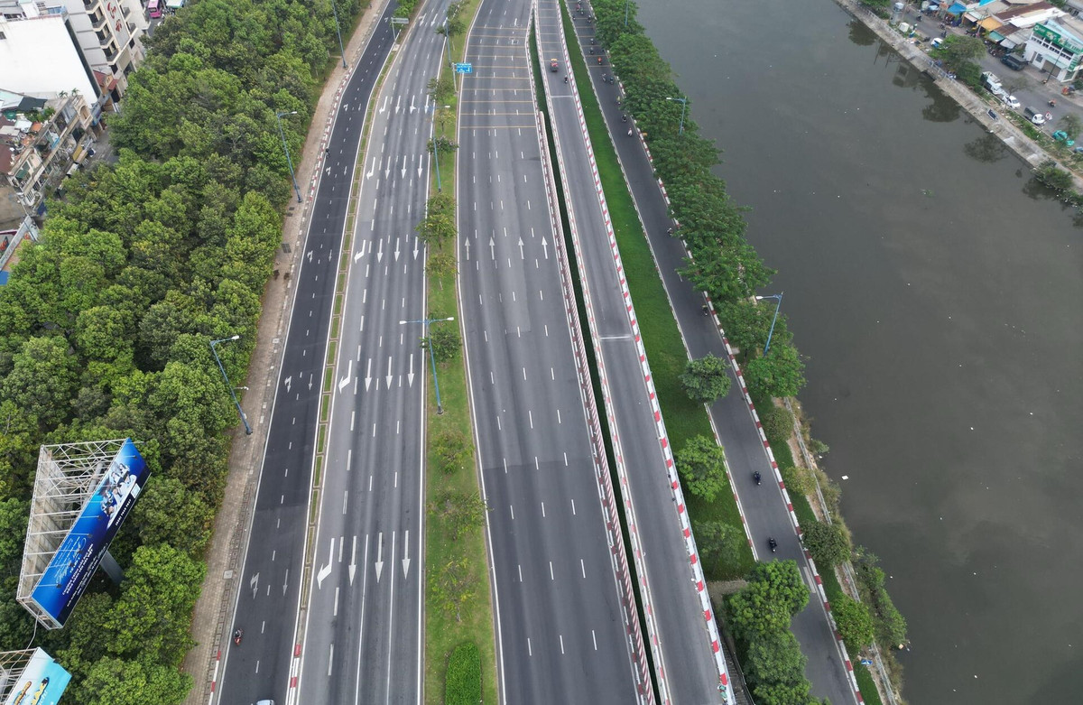 Tại cửa ngõ miền Tây TP.HCM - đại lộ Nguyễn Văn Linh (đoạn qua huyện Bình Chánh) thưa thớt xe, không còn tình trạng kẹt xe hay ùn tắc như thường ngày.