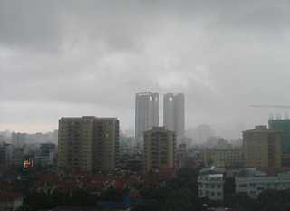 Mây dông vần vũ trên bầu trời Hà Nội (Ảnh: Trần Vũ).