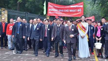 Ngày hội lớn nhất của Chủ nhật Đỏ lần thứ 8 diễn ra tại Đại học Bách khoa Hà Nội ngày 17/1, có sự tham dự của Ủy viên Bộ Chính trị, Phó Thủ tướng Chính phủ Nguyễn Xuân Phúc - Chủ tịch Ủy ban An toàn giao thông Quốc gia. Ông Nguyễn Đắc Vinh-Bí thư thứ nhất T.Ư Đoàn cùng Phó thủ tướng dẫn đầu đoàn diễu hành, cổ động chương trình Chủ Nhật Đỏ 2016.