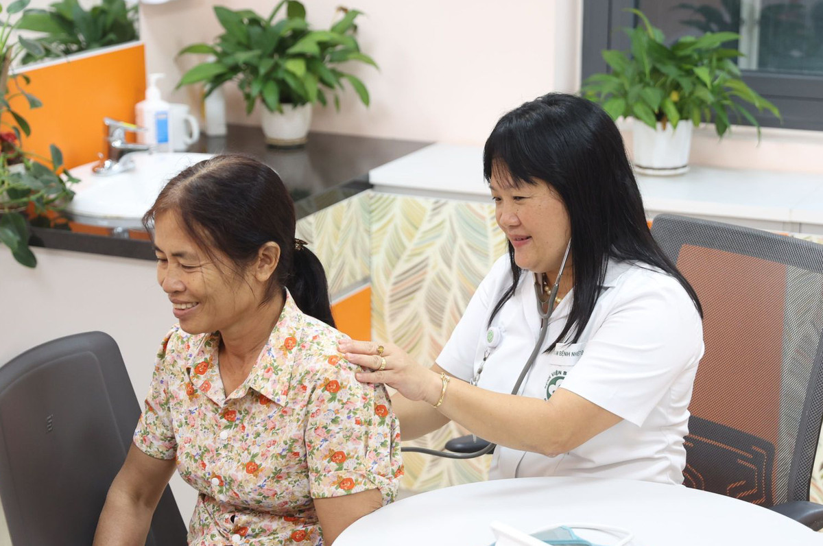 TS. Đoàn Thu Trà (Phó giám đốc Trung tâm Bệnh Nhiệt đới - Bệnh viện Bạch Mai) niềm nở đón những bệnh nhân trong buổi thăm khám ngoài giờ đầu tiên. "Nhìn người bệnh quá vất vả, phải xếp hàng cả ngày để chờ đợi, chúng tôi sẵn sàng khám thêm giờ phục vụ họ. Tôi hạnh phúc khi giúp các bệnh nhân có nhiều thời gian khám hơn trong ngày, nhất là người đi làm giờ hành chính có thể khám sau giờ làm đưa bố mẹ, con cái đến khám sức khỏe định kỳ...", TS Đoàn Thu Trà tâm sự.