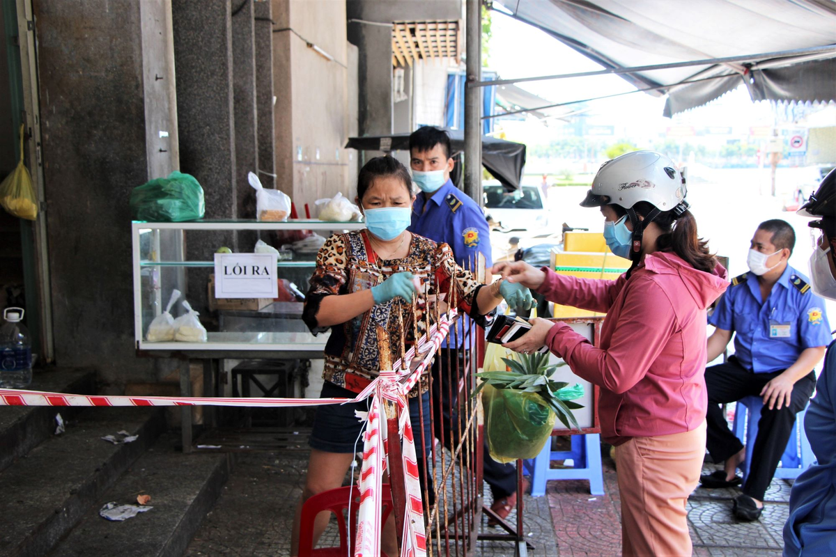 Chợ Hàn (phường Hải Châu 1, quận Hải Châu) sau khi mở cửa trở lại cũng khá đông đúc người mua. Tuy nhiên, đây là khu vực thuộc vùng vàng nên người dân không được đi chợ, tất cả đơn đều do Ban điều hành các tổ dân phố nhận mua giúp.