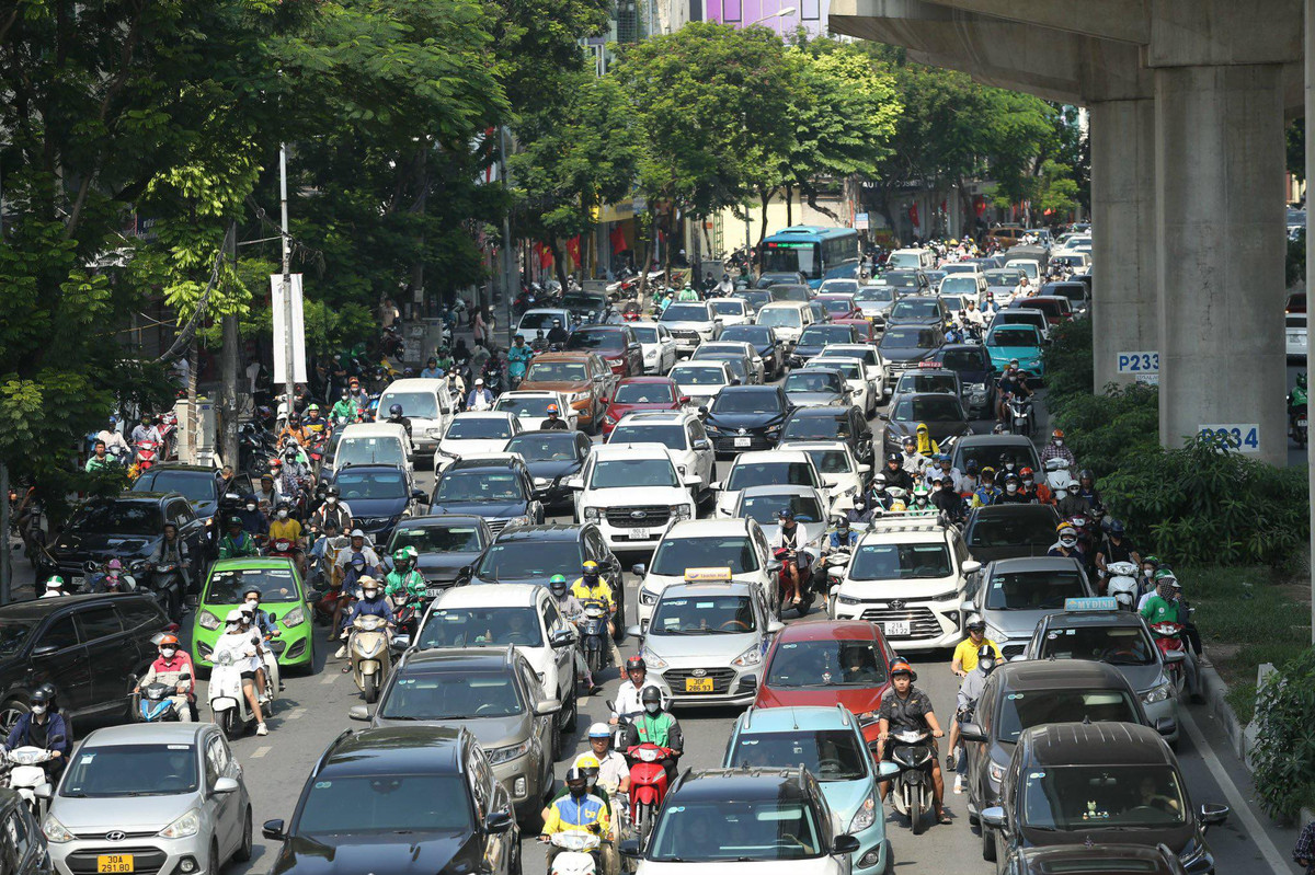Ô tô, xe máy ken đặc trên đường Hồ Tùng Mậu trong ngày đầu nghỉ lễ.