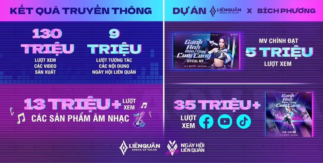 Tâm điểm chú ý của bữa tiệc là màn hợp tác cùng nữ ca sĩ Bích Phương cho ra bài hát và MV “Gánh anh đến giây cuối cùng”. Giai điệu bắt tai cùng lời bài hát mang đậm chất Liên Quân thu hút được hơn 5 triệu lượt xem trên nền tảng Youtube và hơn 35 triệu lượt xem dành cho những nội dung sử dụng nhạc bài hát trên tất cả các nền tảng online.