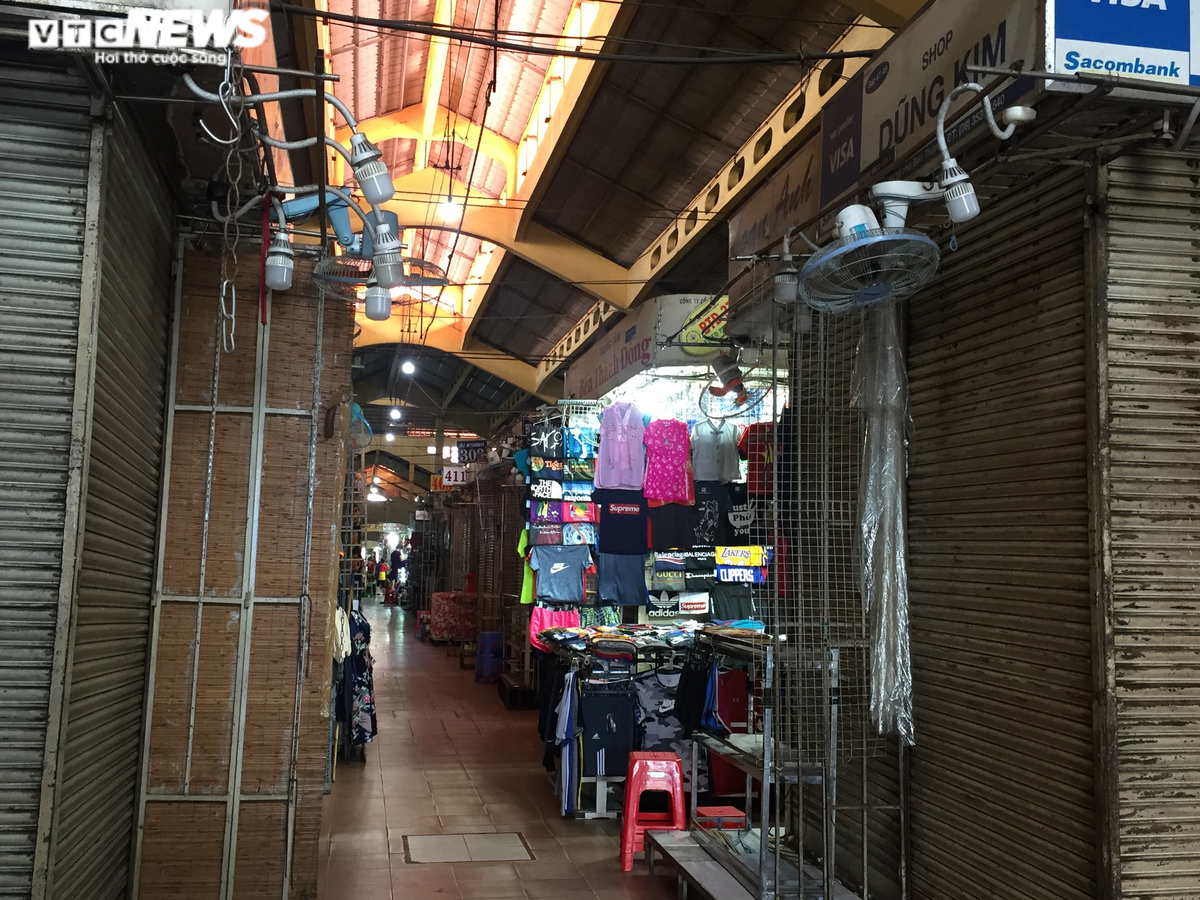 Hầu hết các sạp bán hàng tại chợ Bến Thành đóng cửa vì không có khách tham quan, mua sắm.