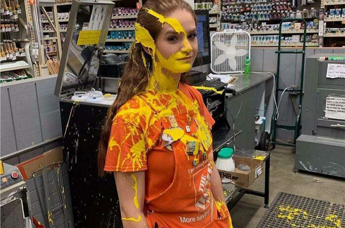 Nhanh trí đổ hết phần sơn còn lại để thay nền nhà thành màu trắng luôn.