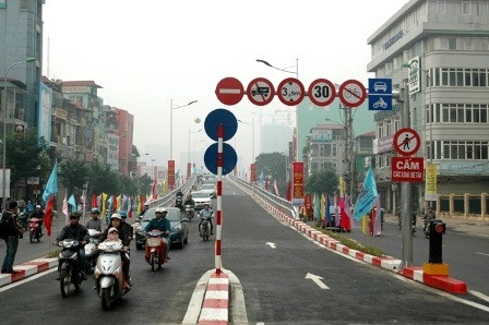 Theo đó, từ 16/12, các phương tiện lưu thông theo hướng đường Trần Duy Hưng đến đường Nguyễn Chí Thanh và ngược lại qua khu vực nút giao sẽ ưu tiên lưu thông trên cầu vượt. Cấm xe đạp, xe thô sơ người đi bộ lưu thông trên cầu vượt.