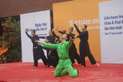 (VTC News) - Sáng nay( 05/02), Ngày thơ Việt Nam lần thứ X đã diễn ra tại khuôn viên Văn Miếu Quốc Tử Giám với sự tham gia của hàng trăm nhà thơ Việt Nam và quốc tế, hàng nghìn người yêu thơ trên khắp cả nước và bạn bè thế giới.