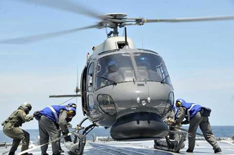 | Trực thăng hải quân Malaysia tham gia tìm kiếm MH370 ở eo biển Malacca. Ảnh: Reuters |