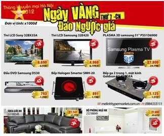 Với chương trình này, khách hàng có cơ hội mua sản phẩm với giá đảo ngược giá bán, ví dụ: Tivi LCD Samsung 32E420 giá bán 6,199,400đ, giá đảo ngược còn 4,960,000đ; Bồn tắm massage Sannora M1476R giá bán 15,801,000đ, đảo giá còn 11,805,000đ; Bộ Sofa da có giá bán 30,771,000đ, giá đảo ngược còn 17,703,000đ…