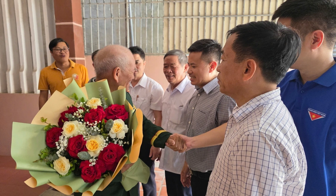 Đảng ủy, UBND phường Quang Trung, TP Vinh ( Nghệ An) đến nhà chia vui cùng ông Trần Văn Thanh. (Ảnh: Bá Thăng)
