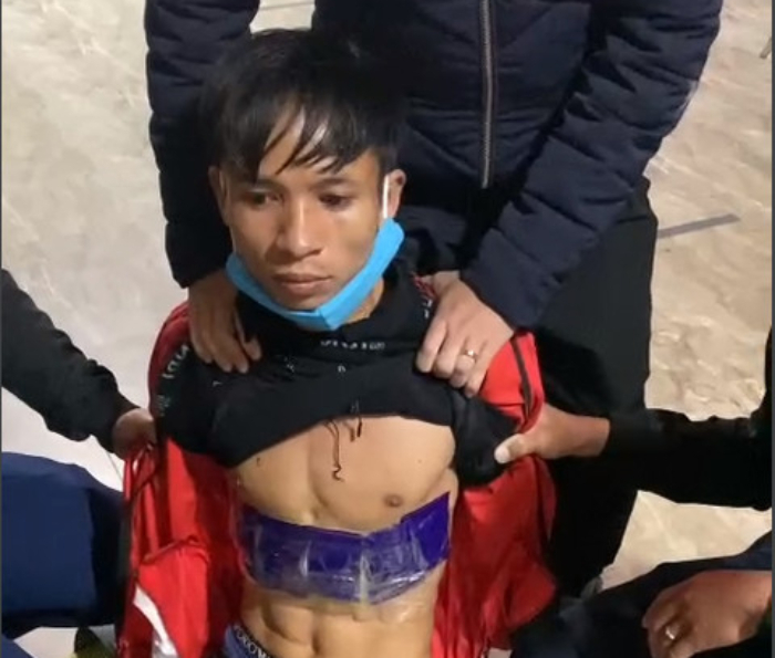 Thái Văn Triều cùng 1.200 viên ma túy được dán trước bụng.