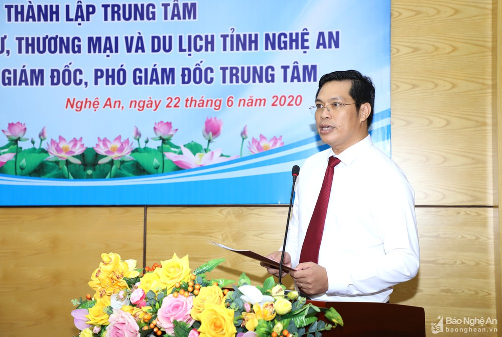 Tại buổi lễ công bố quyết định thành lập Trung tâm Xúc tiến Đầu tư, Thương mại và Du lịch tỉnh Nghệ An cũng công bố quyết định bổ nhiệm Giám đốc, Phó Giám đốc Trung tâm Xúc tiến Đầu tư, Thương mại và Du lịch tỉnh Nghệ An.