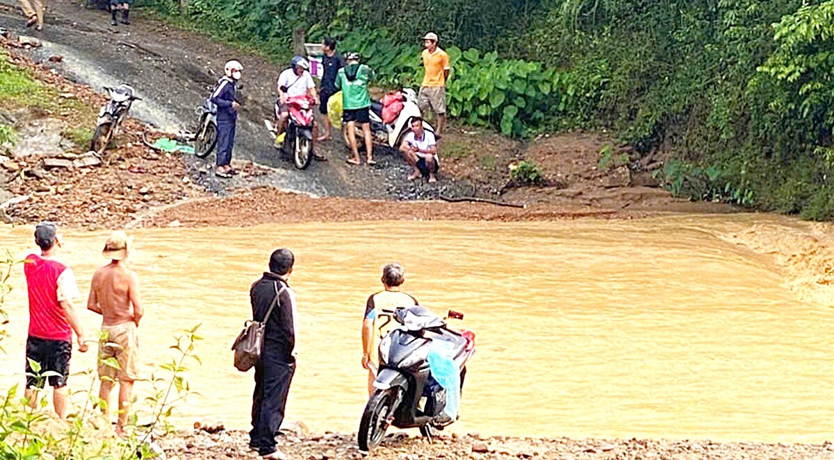 Cầu tràn khe Xiêng Thù bị ngập, giao thông bị chia cắt