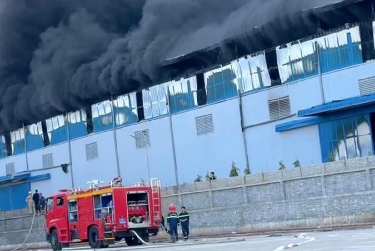 Khoảng 10h ngày 18/11, nhà máy ở Khu công nghiệp Nam Cấm (Nghệ An) bốc cháy dữ dội, cột khói lên cao hàng trăm mét.