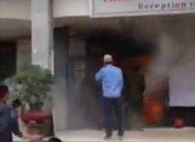 (VTC News) - Một số nhân viên phòng bán vé ga Vinh, tỉnh Nghệ An thấy một người đàn ông đi xe máy từ cổng vào phòng đợi của ga Vinh mang theo một can nhựa khoảng 20 lít rồi bất ngờ đổ xăng ra khu vực phòng đợi và châm lửa đốt.