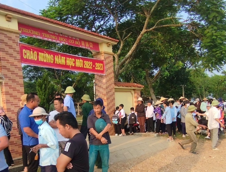 Sáng 7/9, tại trường THCS Khai Lạng cơ sở 2 (đóng trên địa bàn xã Lạng Sơn, huyện Anh Sơn, Nghệ An), hàng trăm phụ huynh tập trung trước cổng trường phản đối việc sáp nhập trường THCS Lạng Sơn với trường THCS Khai Sơn (xã Khai Sơn) thành trường THCS Khai Lạng (đóng tại xã Khai Sơn).