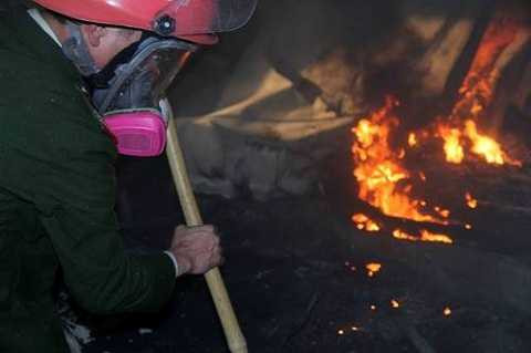 | Sau hơn 1 giờ phát cháy, ngọn lửa cơ bản được khống chế |