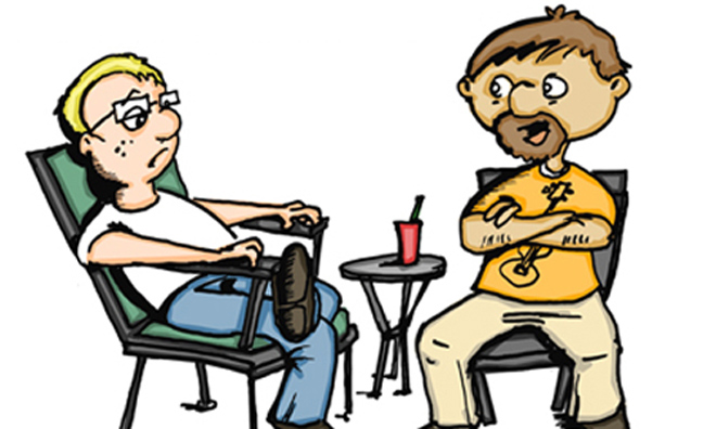 Ðến nơi, thấy bố vợ đang ngồi tréo mảy uống trà, anh ta liền đến kéo ghế, ngồi tréo mảy bên cạnh, rót nước uống tự nhiên. Ông bố vợ nổi giận, vừa lúc thấy con chó đến gần, ông ta giơ chân đá nó một cái. Con chó kêu “oẳng” một tiếng rồi chạy đi. Chàng rể vội kêu lên: