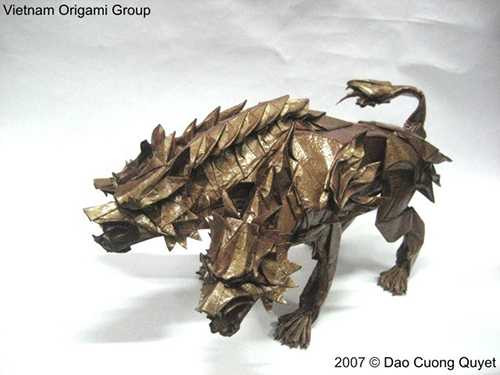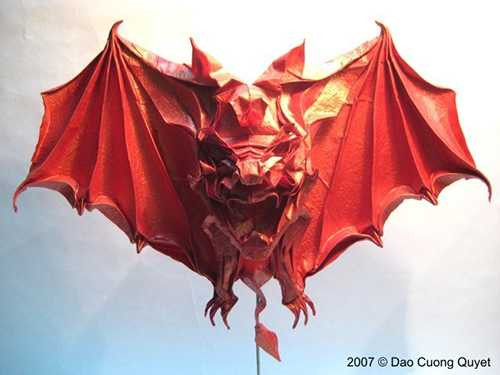 Khác với phong cách mộc mạc của Nguyễn Hùng Cường, Đào Cương Quyết – một nghệ nhân Origami trẻ khác lại yêu thích những hình ảnh liên quan đến thế giới giải trí. Chàng cựu học viên Học viện Kỹ thuật Quân sự từng có bộ sưu tập hình gấp giấy chủ đề Michael Jackson và hiện đang theo đuổi các mẫu giấy gấy lấy ý tưởng từ phim bom tấn. Mới đây nhất, mẫu kỵ sĩ bóng đêm lấy cảm hứng từ series phim Người dơi được Quyết ấp ủ từ lâu, thực hiện trong 6 tháng và vừa mới hoàn thành. Tác phẩm với rất nhiều chi tiết phức tạp, được lắp ghép từ nhiều tờ giấy khác nhau, thể hiện tư duy mang tính hệ thống của chàng trai trẻ.