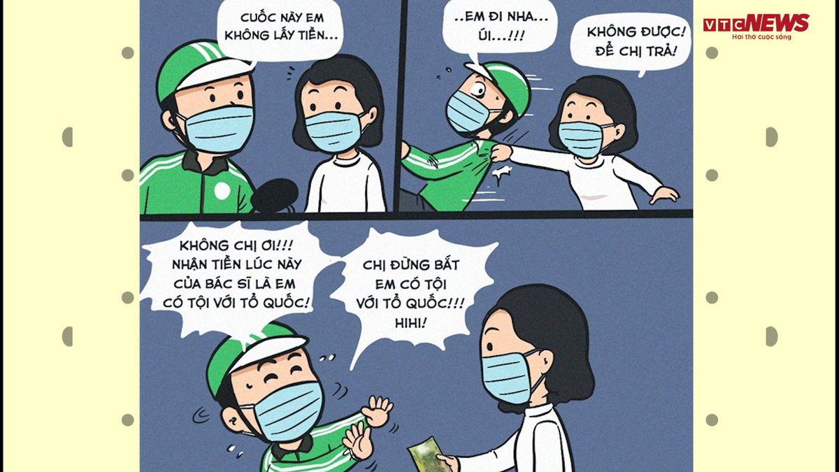 Câu chuyện tài xế GrabBike nói nhận tiền của bác sĩ là có tội với Tổ Quốc được lan tỏa trên mạng xã hội khiến nhiều người xúc động, ấm lòng trong mùa dịch.