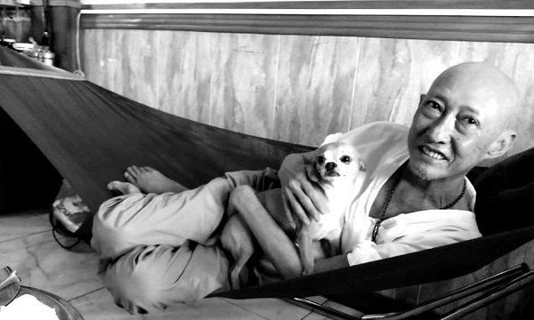 Tuần này, ông phải sử dụng morphine vì cơn đau đến nhiều hơn. Có hôm ông phải uống morphine liều cao và 4 viên giảm đau. "Tôi bây giờ chỉ muốn nằm như vậy, tụng kinh niệm phật", ông vừa nói vừa vuốt ve chú chó nhỏ. "Nhà có mình nó. Con gái tôi bận đi làm công ty, mấy hôm nay bệnh nên không sang được. Con trai nuôi thì đang đi phim".