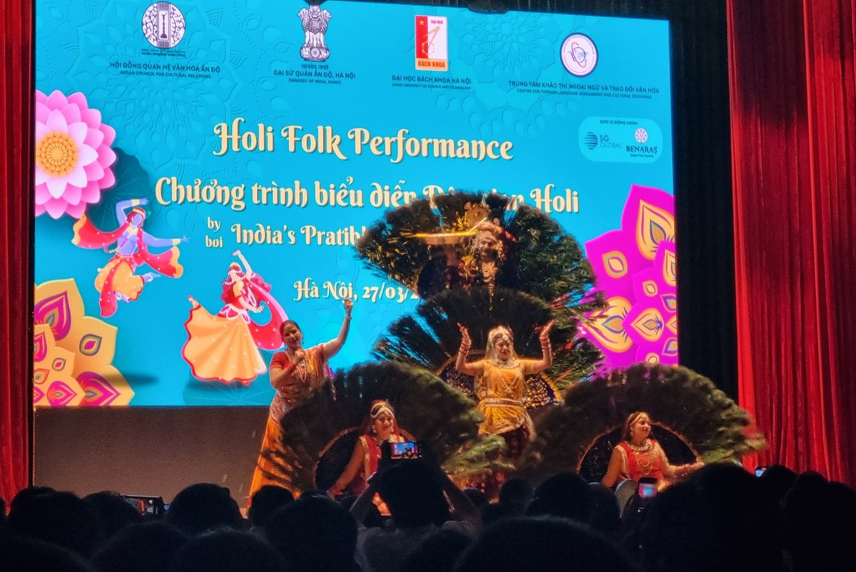 Tối 27/3, khán giả trẻ Việt Nam đón đoàn múa dân gian Ấn Độ Pratibha Kala Kendra đến giao lưu và biểu diễn tại Đại học Bách Khoa Hà Nội. Buổi biểu diễn nằm trong chuỗi các sự kiện giới thiệu đoàn múa dân gian Ấn Độ tại các tỉnh thành Việt Nam từ 26-31/3, do Đại sứ quán Ấn Độ, phối hợp với các cơ quan chức năng Việt Nam tổ chức.