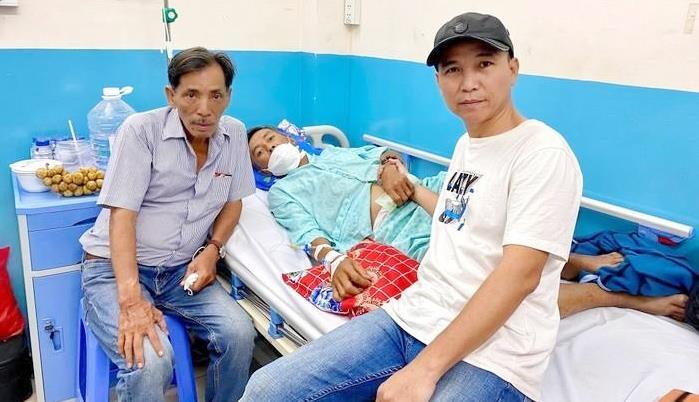 Nghệ sĩ Thương Tín cùng nhạc sĩ Tô Hiếu thăm hỏi diễn viên Bắc Hải.