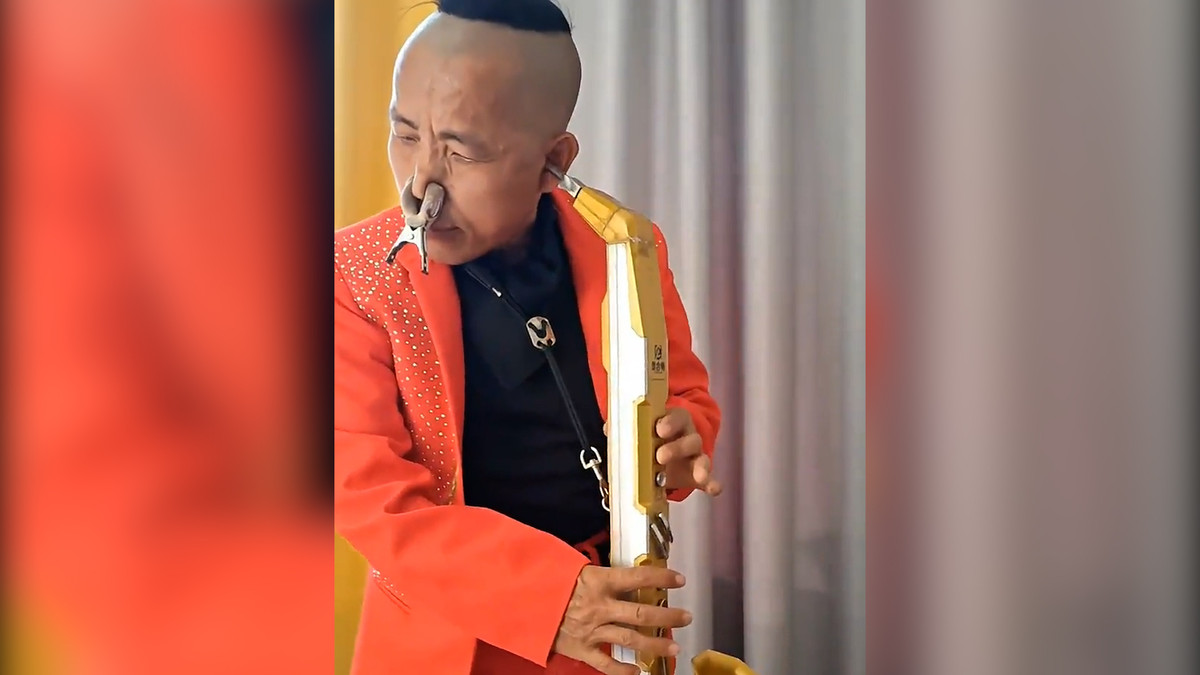 Nghệ sĩ ở tỉnh Quý Châu, Trung Quốc đã khiến cộng đồng mạng sửng sốt khi thổi kèn bằng tai.