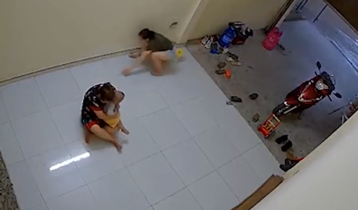 Nghe tiếng sấm lớn, cô gái ngồi trong nhà giật mình quăng điện thoại ra cửa khiến nhiều người xem clip phì cười.