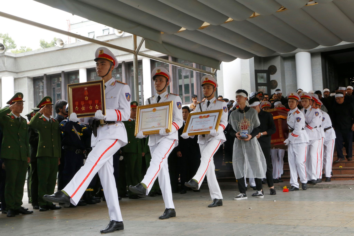 Lễ viếng và truy điệu 3 chiến sĩ hy sinh tại xã Đồng Tâm, huyện Mỹ Đức, Hà Nội diễn ra sáng nay tại Nhà tang lễ quốc gia, trưa cùng ngày lễ di quan bắt đầu.