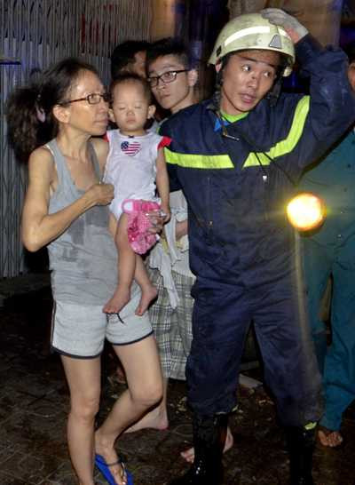 Sau khoảng 30’ lực lượng cứu hộ đã giải cứu được 5 người gồm: Nguyễn Thị Kim Oanh (57 tuổi), Phạm Ngọc Quỳnh (58 tuổi), Phạm Nguyễn Ngọc Quỳnh (18 tuổi), Phạm Ngọc Bảo Khánh (6 tuổi) và Phạm Ngọc Bảo Yến (13 tháng tuổi) xuống đất an toàn.