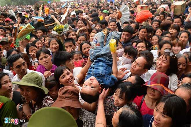 | Lượng người dồn về khu đền Thượng mỗi lúc một đông, lực lượng chức năng phải rất vất vả mới đưa được các em nhỏ ra ngoài (Ảnh: GĐ&XH) |