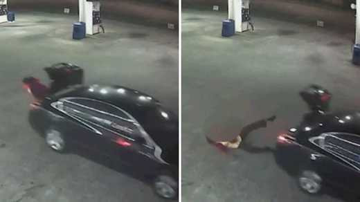 Vụ việc xảy ra hôm 14/3 tại một cây xăng ở Birmingham, Alabama, Mỹ và được camera giám sát ghi lại.