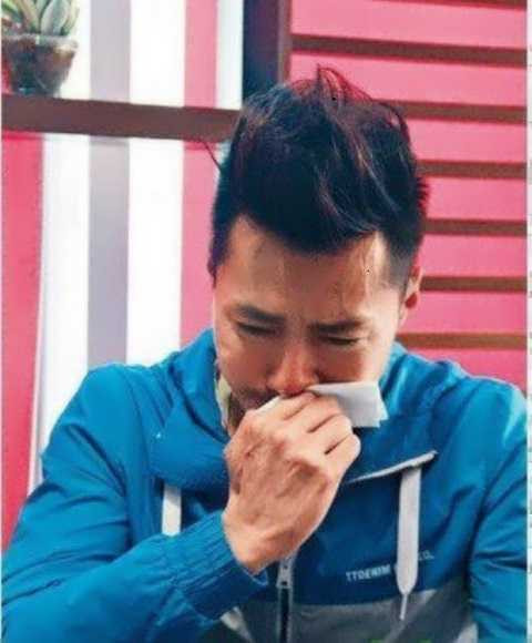 | Bạch Kiện Ân khóc nức nở khi trong buổi họp báo. |