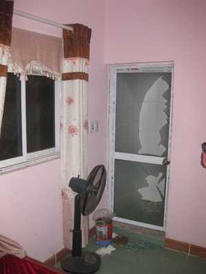 | Cửa kính nhà vệ sinh phòng 202 nhà nghỉ Thuỳ Linh bị đập vỡ |