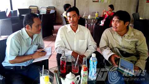 | Anh Nguyễn Minh Đăng (giữa) trình bày vụ việc đến phóng viên VTC News và hiệp sỹ Nguyễn Thanh Hải. Ảnh: Huy Phan |
